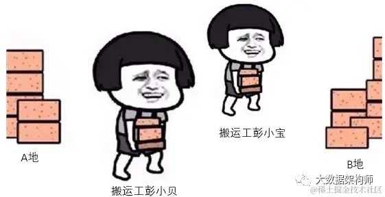 于是彭小贝喊来彭小宝,一起来搬砖。不一会儿就搬了很多砖,效率贼高。但是没一会儿搬砖系统就出故障了:天气太热,彭小宝又累又热,罢工了,给冰棍也不好使!于是又回到最初的单线程时代,彭小贝快要崩溃了!此时老板的话又萦绕耳边:要用大数据技术驱动业务!突然,一个念头闪过:可以用kafka(MQ)的原理去解决!