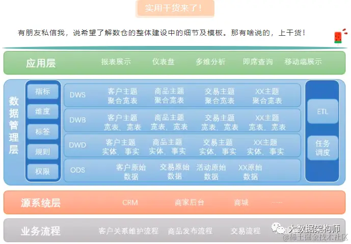 我有一篇文章,详细解释了数据仓库的完整建设路径和细节,可以移步了解一下:《点击查看:如何搭建一个数据仓库》
