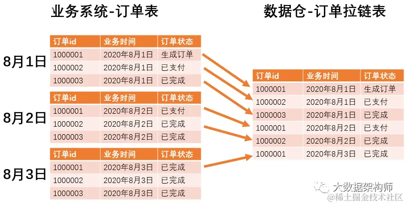 tips:除了拉链表之外,通常还有全量快照表、增量表和流水表,一共四种形式收集历史数据,这四种情况下次开单篇聊。