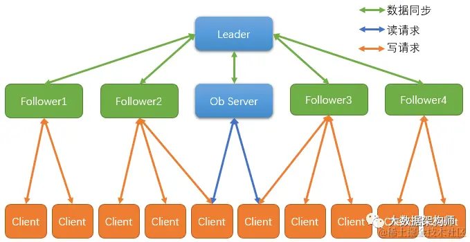 ObServe:提供客户端的读服务,不参与投票,只同步leader的状态。