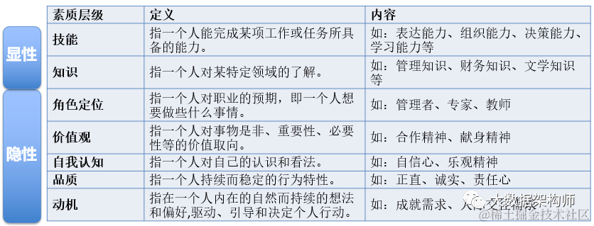 我们选拔一个人才,最简单的是通过学历、专业知识、工作经历等内容进行判断,这些内容在冰山模型中被定义为“显性能力”。显性能力能够通过培训快速提升。所以很多找工作的同学都会去刷LeetCode。