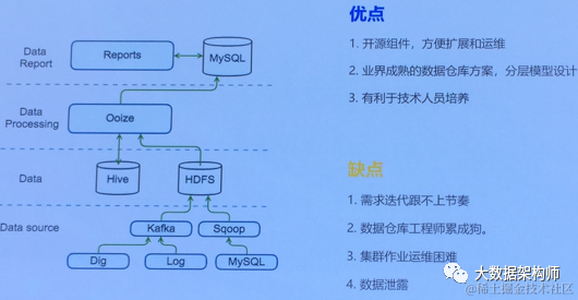 大家不要觉得这个很Low,其实这套架构足够一个中小型公司用好久好久了。基本上招一个中级大数据工程师,带俩初级工程师,加一个报表工程师,能抗很久。