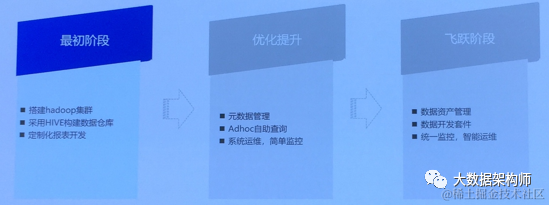 其实这也符合架构的原理:够用就行,适度超前。毕竟满足业务需求是第一要务,跟产品的MVP(最小可行产品,Minimum Viable Product)原则一致。现在很多公司搞大数据的套路是先找一个总监,总监再找一个架构师,然后瞅准最先进的数据中台搞。这种公司各位最好有多远躲多远。