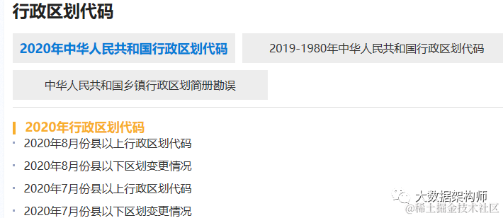 其实我们有很多数据来源渠道。以国家标准行政区划为例,这都是国家政府官方发布的,我们直接去官网找就好了。