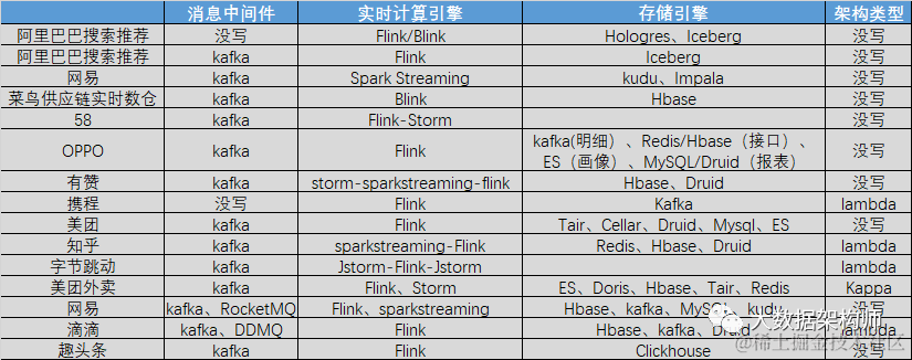 最后,给大家总结了一下各大厂实时数仓的建设架构: