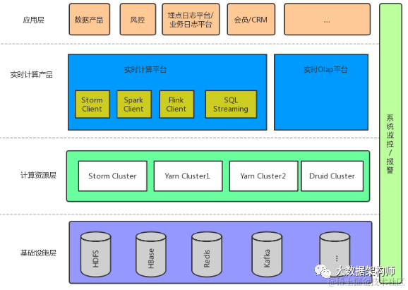 有赞用的是kafka+Storm/Flink+Druid/Redis/Hbase的架构,而且有赞的这篇文章详细的阐述了实时数仓的迭代过程,很有参考意义。