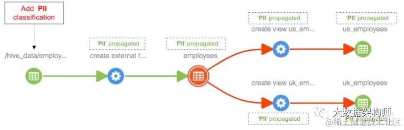 并且还可以通过很简单的操作,在上游进行操作后,会对下游所有表都打上相应的标签,便于做影响分析。