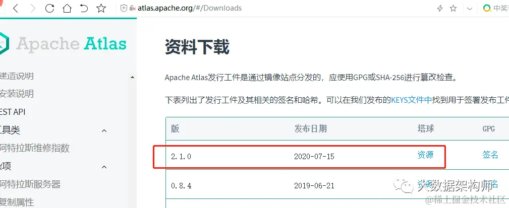 你可以到Apache Atlas官网去下载 点击:atlas.apache.org/