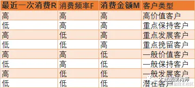 RFM的变种之一就是替换RFM中的M,比如RF+年龄段。当然,只要你能想出来,可以任意组合,比如当月消费等级+用户年龄段+地区等。之前我做过汽车行业的用户细分,就做过客户偏好+投诉频次+活动参与的组合维度,可以分辨出忠诚客户还是难缠客户。