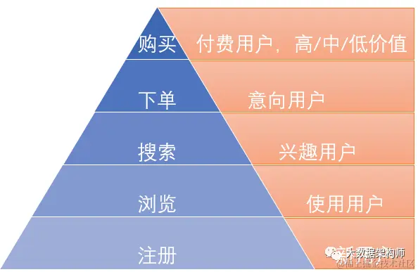 按用户运营流程分,如AARRR、RARRA、“新用户、使用用户、兴趣用户、意向用户、付费用户”等;