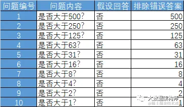 问题1:这个数字是大于500对吗?无论答案是“是”还是“否”,都直接排除掉另外500个数字,这是第一次“折半”。咱假设是小于500.