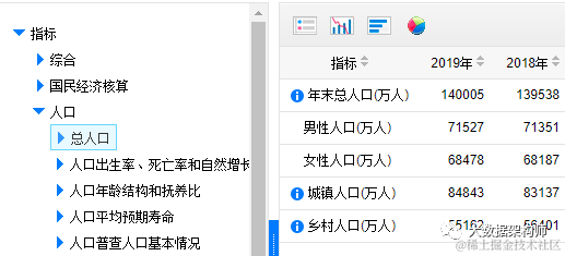 这是从国家数据中截取的内容。为了大家能更容易理解,我还带上了指标对应的数据。