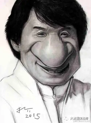 现实中没有长成这样的人吧?但是一点都不妨碍我们识别出这事成龙。为什么呢?因为这个画抓住了几个重点:1、大鼻子;2、眼睛,最多加一个发型&脸型。而其他的其实都可有可无。不信我们把他的嘴巴和衣服去掉,也是一样的: