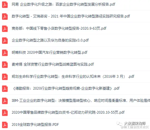 - 数字化转型行业报告,就是各研究院做的分析报告;
