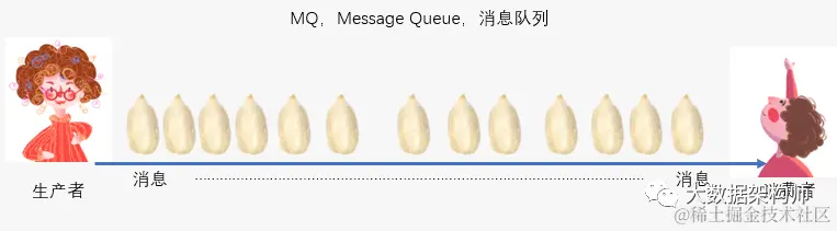 而有了 MQ 机制之后,有生产任务了,生产者再过来干活也不迟。消费者也不用老等着,或者过一会来看一次,而是在队列那头等着触发就行。来一个信息,就消费一个。