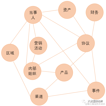 从上图我们可以看出各主题域的重要程度。很简单么,跟外面连接最多的,就是核心主题域了。最重要的就是当事人、协议和组织了。