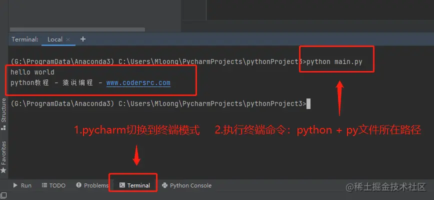 方法五:切换到 Python Console 窗口,注意方法三和四是使用的 py 文件,该方法是直接输入的 Python 代码