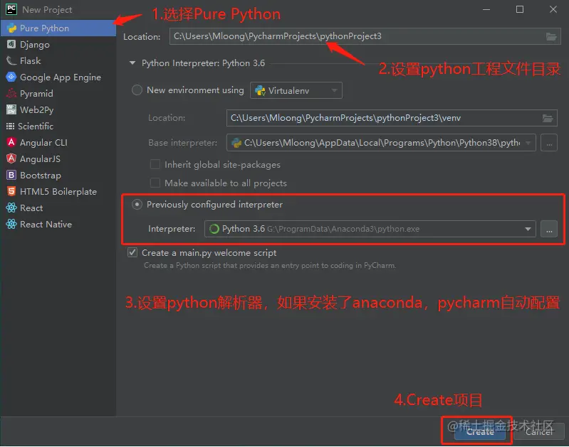 设置 Project 属性的时候选择 Previously configured interpreter!