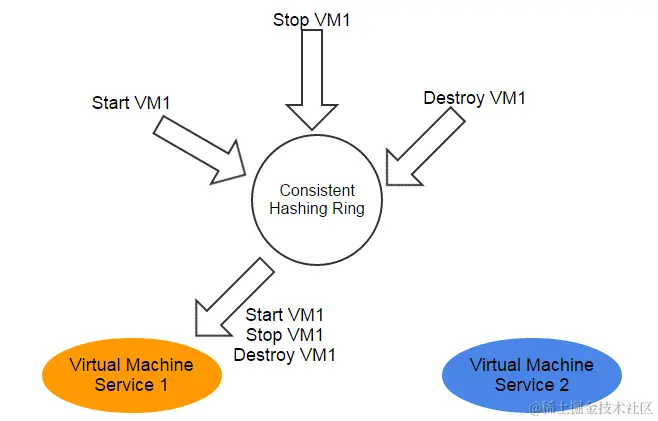 使用一致性哈希算法,来保证同一个服务实例能够处理所有到达同一资源的消息,这就是无锁架构的基础。通过这种方法聚集到达某一节点的消息,可以减少从分布式系统到多线程环境的同步,并行化的复杂性(更多细节见ZStack的伸缩性秘密(第二部分):无状态服务)。