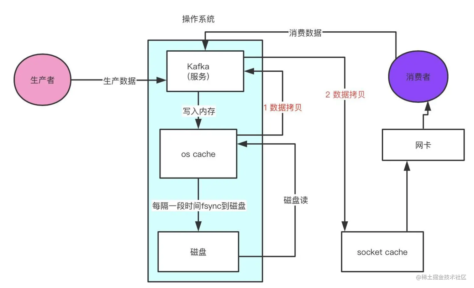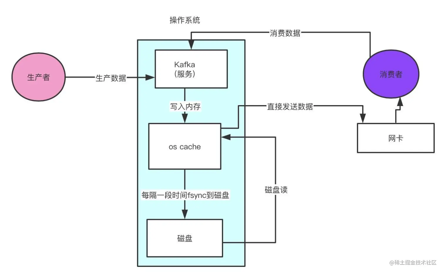 Kafka是将消息记录持久化到本地磁盘中的,一般人会认为磁盘读写性能差, 对Kafka性 能如何保证提出质疑。