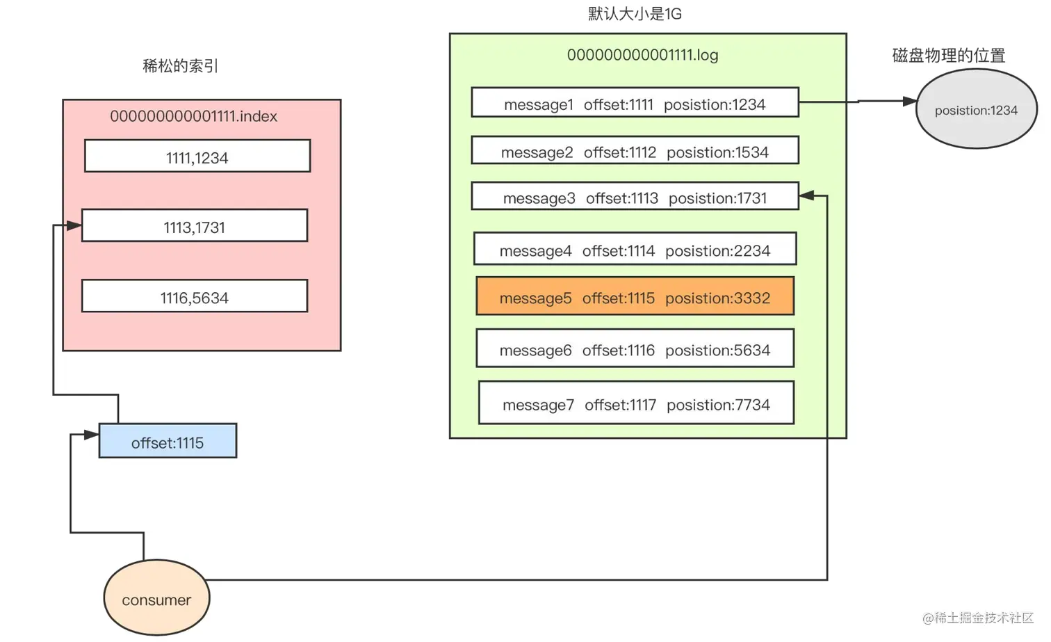 log文件:消息存储 index文件:索引信息 成对出现