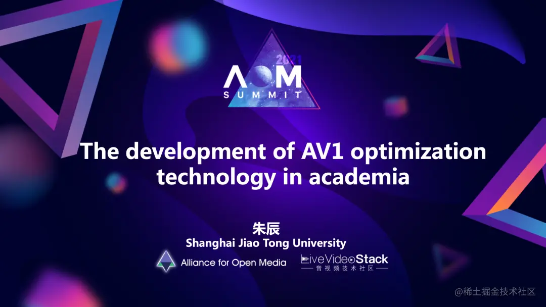 各位专家以及屏幕前的各位观众大家好!我是朱辰,目前是上海交通大学图像所的在读博士生。本次分享的主题是学术界AV1编码优化技术的进展。