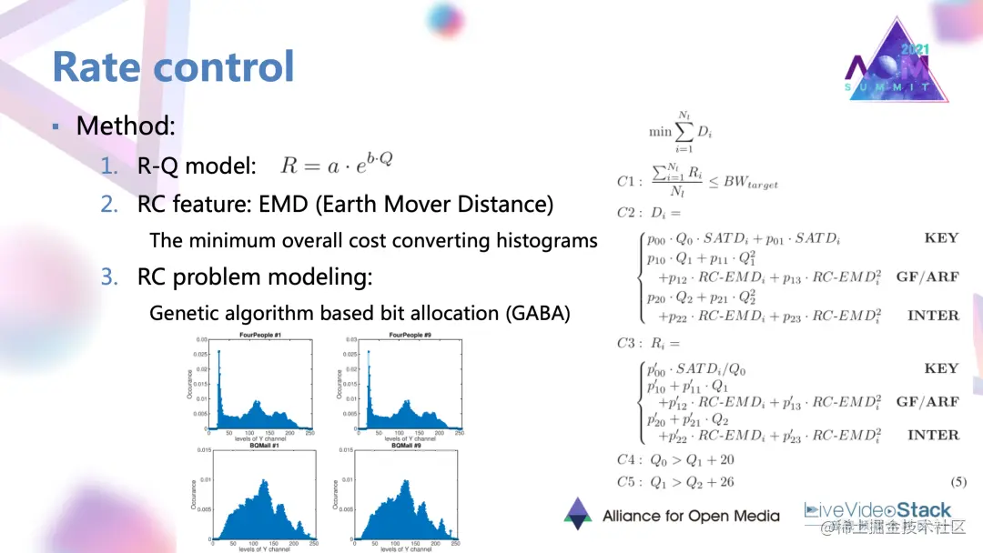 一般的码率码控条件是在码率约束下寻求最小的失真,在其他给定的失真或者特征情况下,限定一些额外的条件。最后的话这个工作使用了一种遗传算法的求解方式。是找到了一组码控的局部最优解去优化码率控制。
