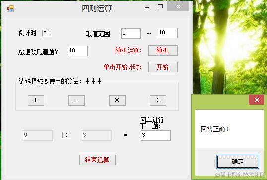 这样程序会自动产生算法。并且时间到的时候,会自动弹出时间到和测试结果。