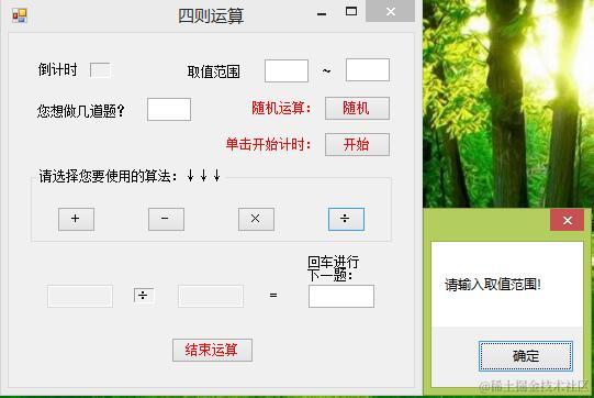 (3)用户可以设定随机整数的范围,那么我首先想到的是在给出随机数的时候设定一个范围,其实很简单。拖出两个文本框,比如textBox4,textBox5,然后让这两个文本框的值转换成int类型,并让Random()方法从给出的这个范围出题。