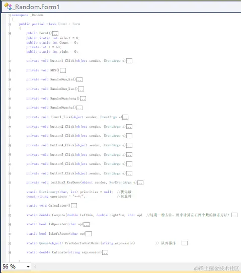 对于5):加了小括号,这就要考虑优先级了,并且不能再用两个文本框来生成两个数字进行运算了。所以我考虑,把两个文本框合成一个文本框,这样的话就让它来存生成的一个式子,最后只对这个式子进行运算就OK了,这不但可以生成两个数的运算表达式,还可以生成三个数的运算表达式,就看你怎么定义出题方法了。当然了,想的是很简单,毕竟生成的是一个式子而并非两个数进行计算那么简单了。所以我继续分析,就对后面的这个式子进行研究啊。首先它是一个字符串表达式,而进行计算的话肯定不能用string类型的来进行计算。所以用队列把表达式里的每一个数取出来,并定义一个栈,让取出的元素放到栈里,这样的话只对栈里元素用逆波兰式进行计算就可以了。