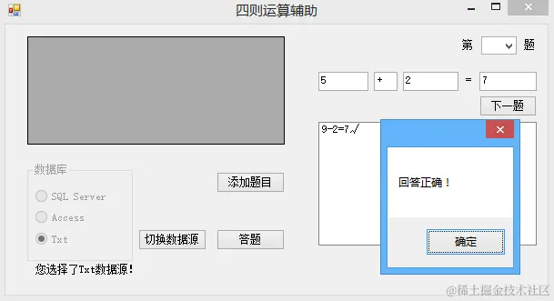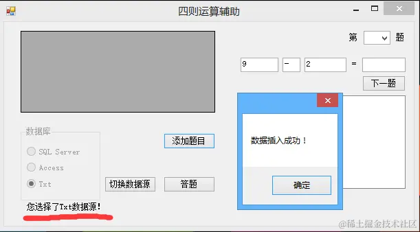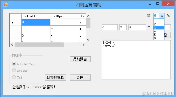 5.使用txt数据源做了2题后切换数据源,此时同样可以使用SQL Server数据源来答题。