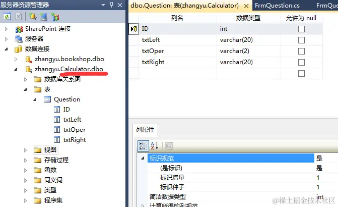 string selInfo = "select ID,txtLeft,txtOper,txtRight from Question";