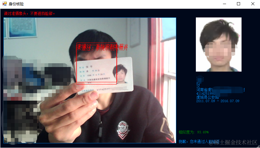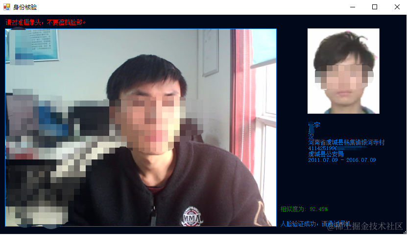 大致的界面是这个样子,很普通,左侧是视频,右边是身份证照片以及一些状态