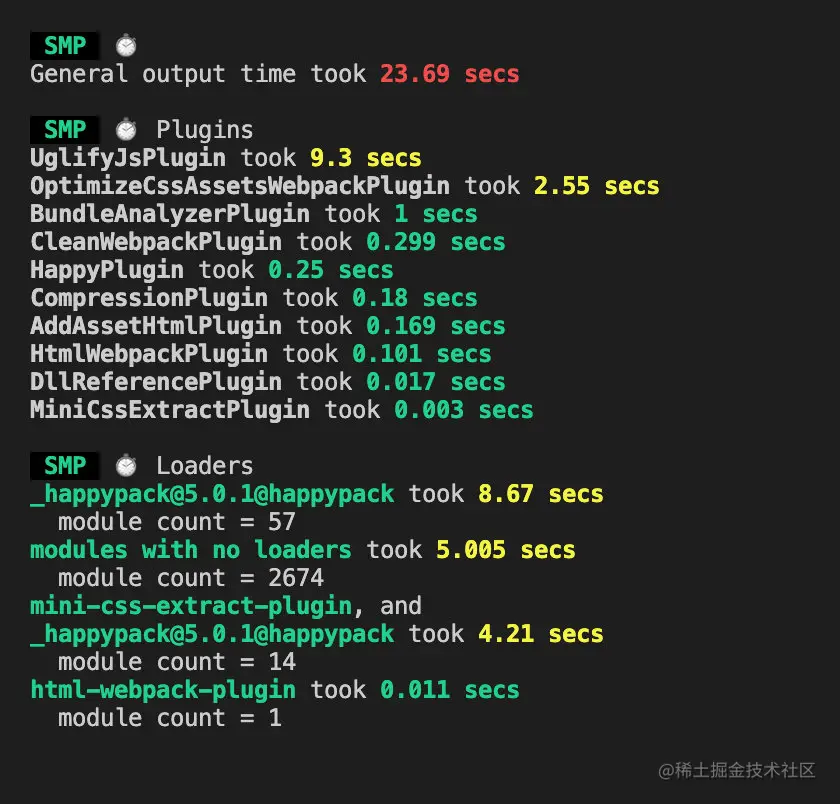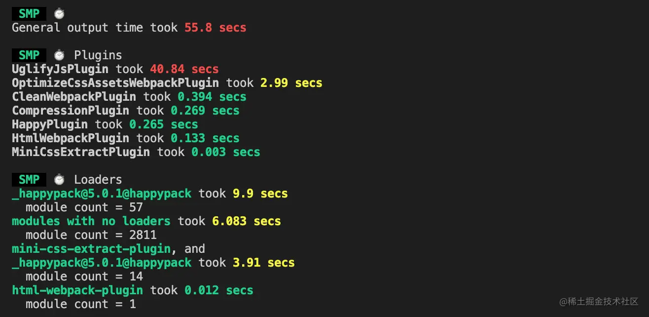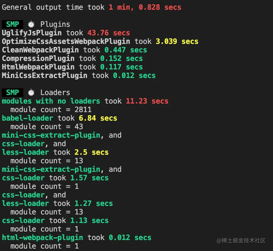 加入 SpeedMeasurePlugin 插件对各个阶段的时间进行分析