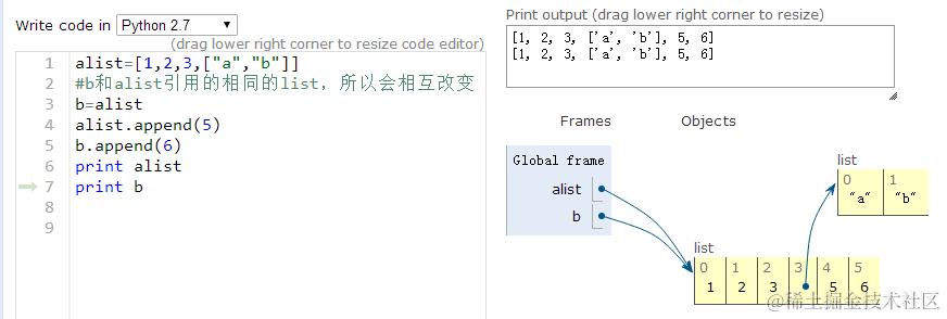 (1)直接赋值,默认浅拷贝传递对象的引用而已,原始列表改变,被赋值的b也会做相同的改变