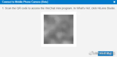 2. 按照“接入手机摄像头(Beta)”对话框的指引,打开手机微信,扫描对话框中的二维码。手机微信进入“EI 体验空间”小程序。
