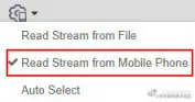 单击 HiLens Studio 界面上方导航栏的 ,选择“Read Stream fromMobile Phone”。