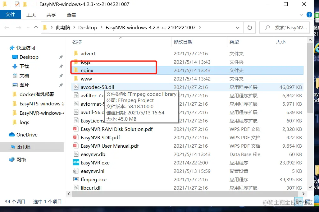 1.首先进入到EasyNVR的根目录下,找到nginx的目录,如下:
