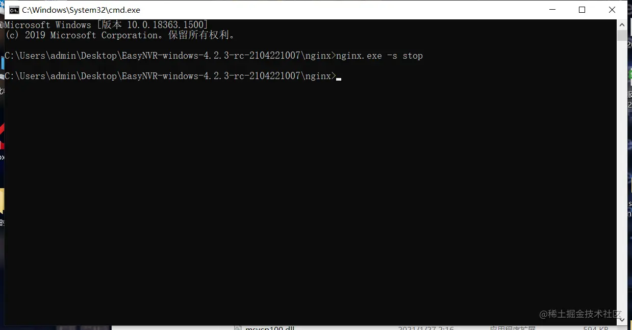 3.在cmd命令行窗口停止掉nginx的服务,命令为: