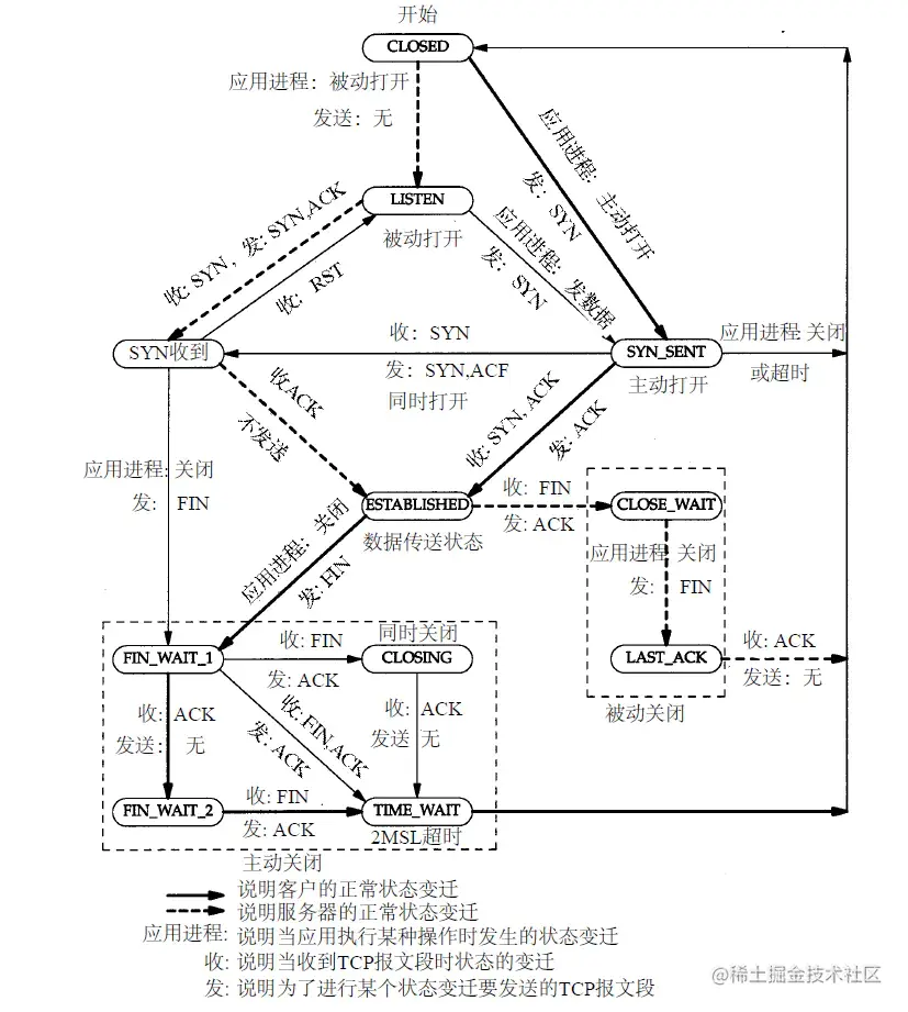 其中ACK报文是用来应答的,SYN报文是用来同步的。但是关闭连接时,当服务端收到FIN报文时,
