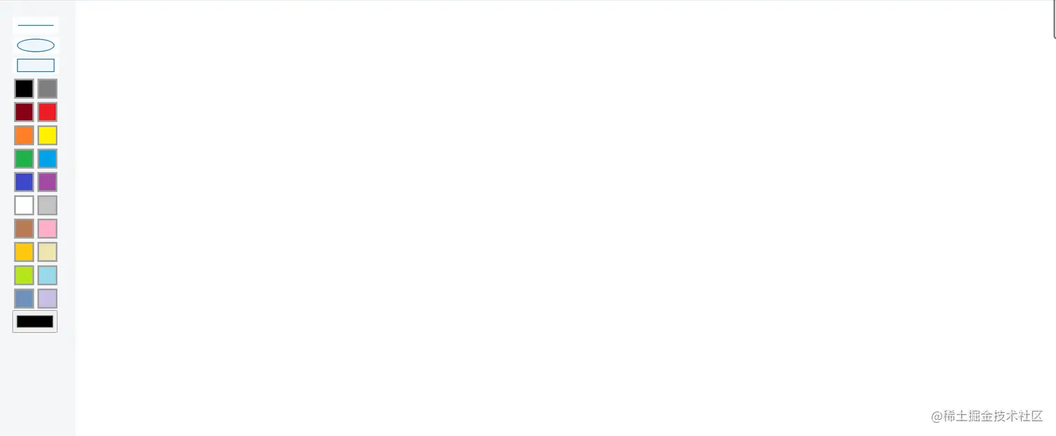 其次我们设置一个标志位 stroke_style 去判断当前图形工具是曲线还是多边形,默认是 line(曲线),这时在 mousemove 中就需要去判断这个标志位如果是曲线则绘制短直线如果不是则不做任何操作,因为在绘制矩形和椭圆的时候只需要两点坐标就可以,mousedown 和 mouseup 给我们提供了这两点坐标