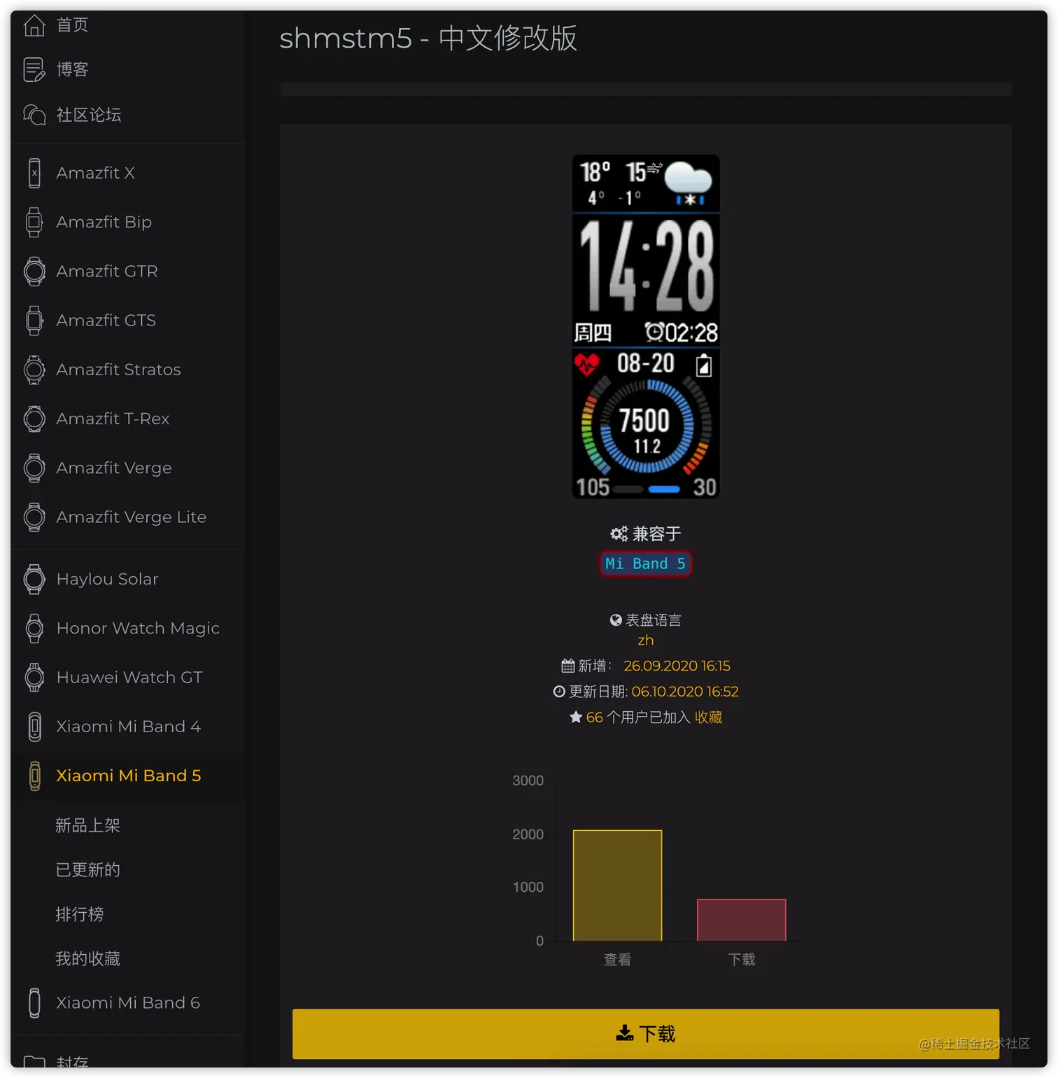 这里app也提供了一些表盘。相比之下,这里面内容不多。喜欢可以看看,下载。在这里的下载后,同步就好。