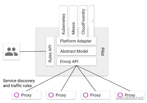- 任何第三方可以实现自己的proxy,只要符合相关的API标准,都可以和Pilot集成