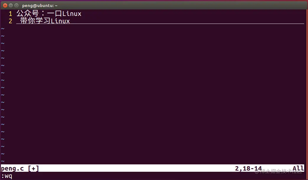 OK,我们要存档了,存盘并离开的指令很简单,输入 :wq 即可保存离开!
