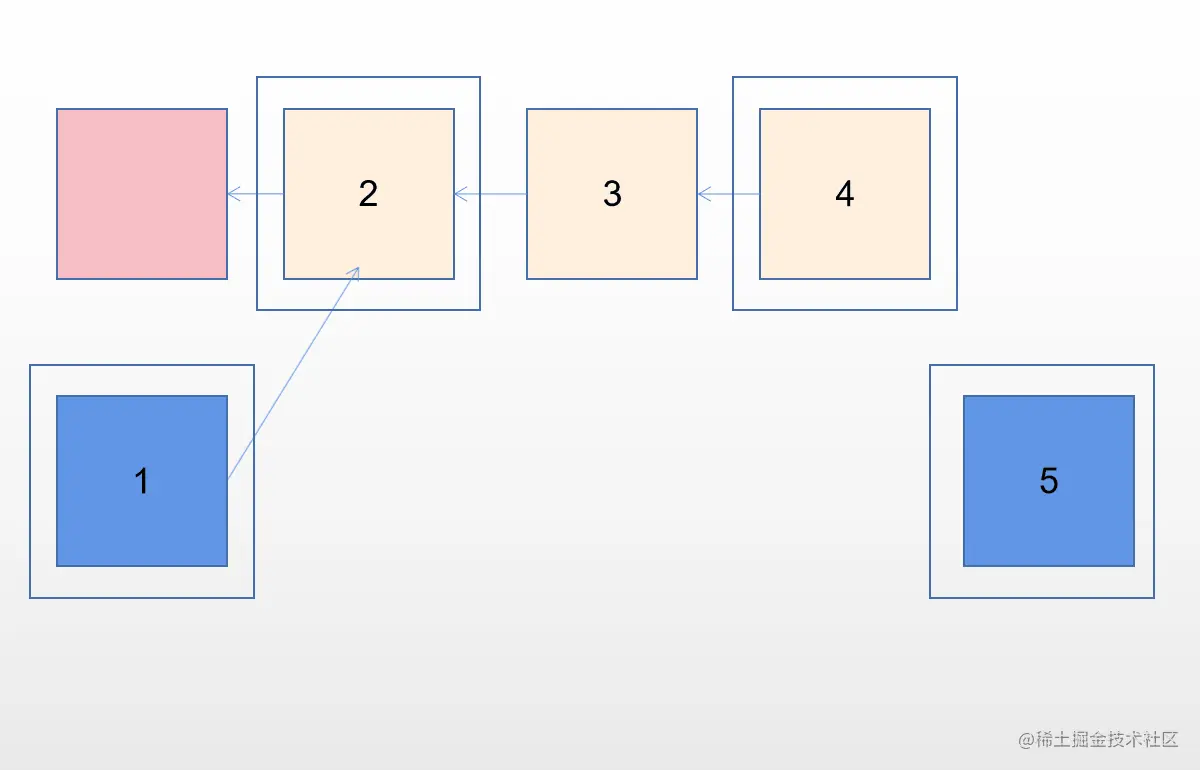 - 最终将会是如下指向问题,对于节点3、节点4也是同样的操作。
