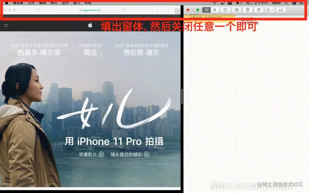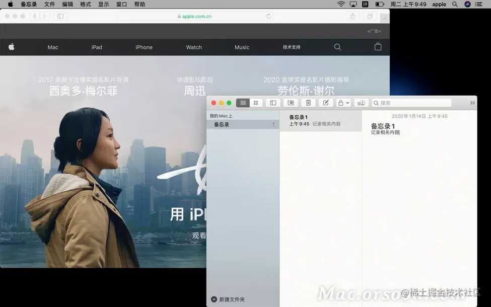 首先我们看到的是正常打开的两个软件,Safari 浏览器和 Notes 记事板。