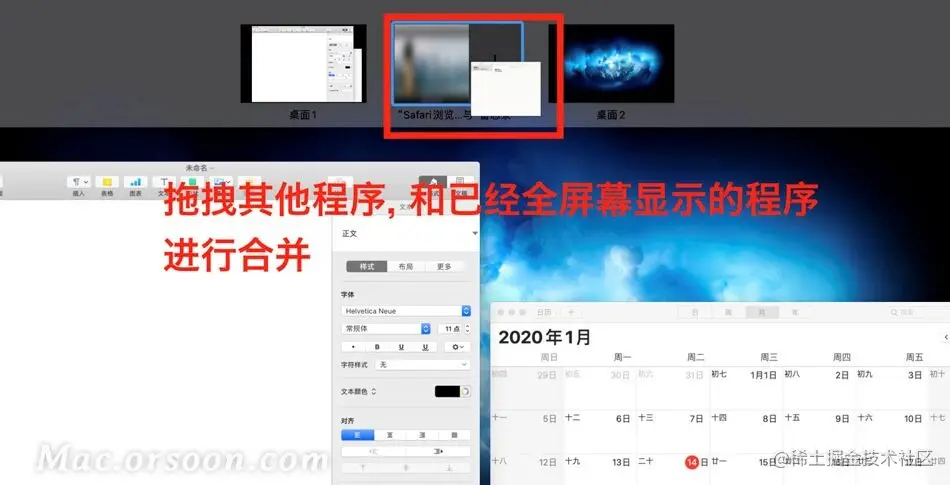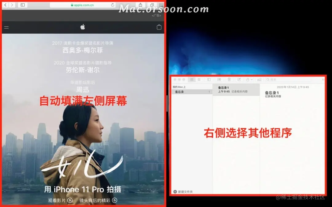 在10.11之前的 Mac 系统是不支持不同程序在屏幕上进行分屏显示的。