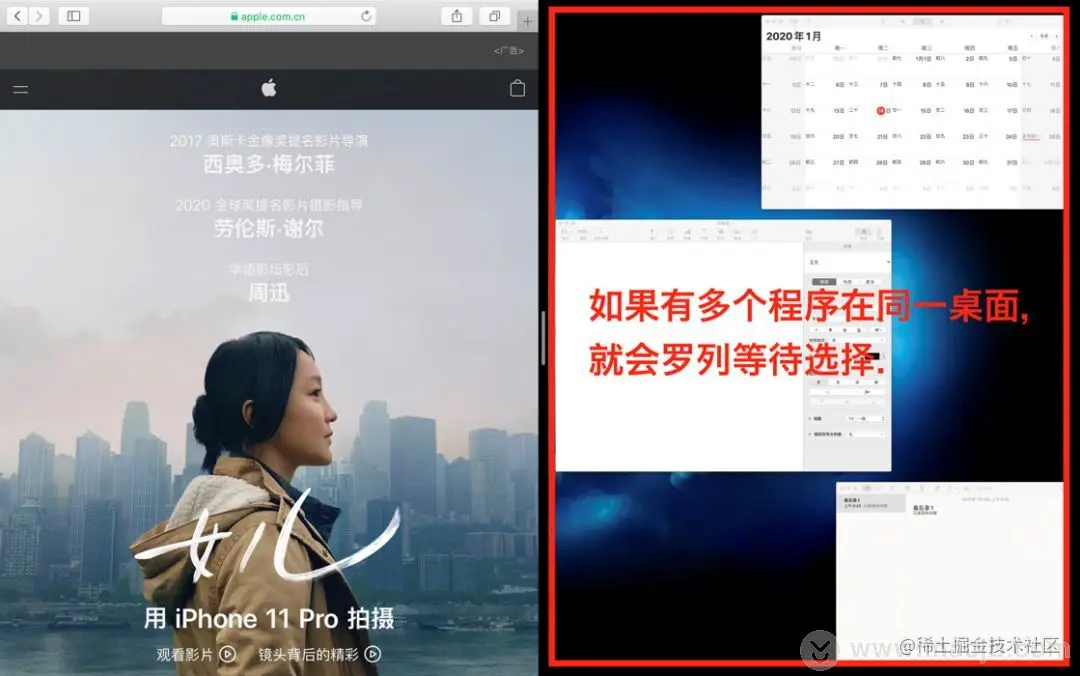 如果同一桌面有更多程序的话,就需要选择分屏显示的软件是哪个。