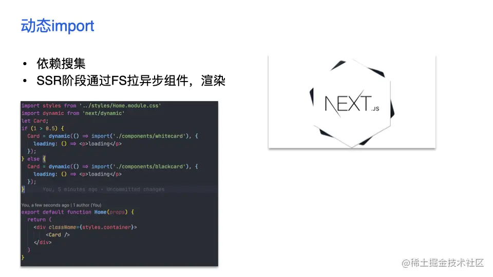 这种方式其实就是 Next.js 所采用的一种方式。我们这里面也尝试了一下,这里给出了示例代码,下面简单介绍一下这块代码的具体做的事情: