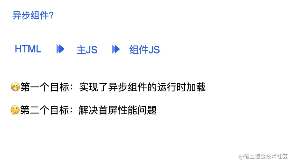 前面我们提到除了要解决组件本身的动态性和隔离性,第二个我们还需要关注的是组件的性能问题,正是因为这一点,所以我们没有直接使用社区的一些现有的动态引入方案。因为很多人可能会有疑问,像 React 的社区,本身提供了可以动态去引导一个组件的能力,它可以在你打包的时候,不把组件直接打包到你的主页面,而是在你运行的时候再将其他引入进来,但是有个问题,这本身的方案是不支持服务端渲染的。